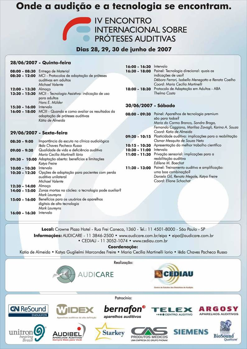 IV EIPA - Onde a Audição e a Tecnologia se Encontram - 28 a 30 de junho de 2007